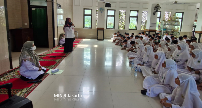 Jakarta (Humas MIN 9) — Madrasah Ibtidaiyah Negeri (MIN) 9 Jakarta Selatan menggelar kegiatan Read Aloud Goes to School bertema “Cahaya Bersih untuk Bumi – Read Aloud